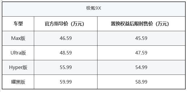 9月29日,極氪9X正式上市,推出4款車型,官方指導價區間46.59-59.99萬元,超級置換權益后限時售45.59-58.99萬元。官方數據顯示,新車上市僅13分鐘大定就突破1萬臺。