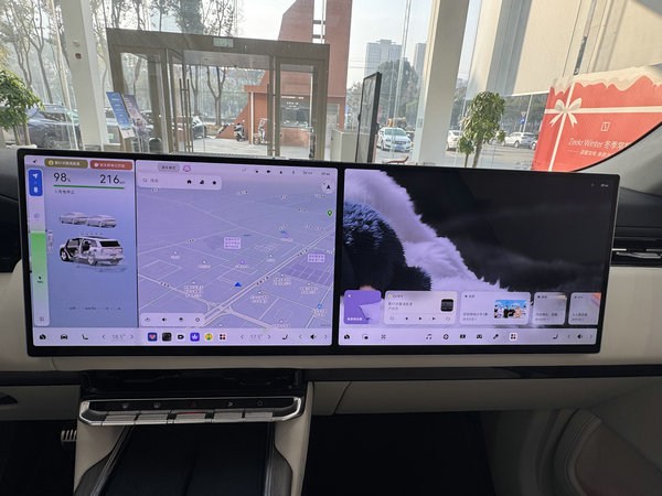 車輛的內飾采用環抱式的設計,并且采用了豐富的材質搭配,如木飾板、真皮、金屬飾條等等,新車采用中控與副駕一體式的雙聯屏,搭配最新的極氪OS 7.0車機系統,在系統的操作、SR的界面上都提供了全新的體驗。極氪9X搭載來自英國的naim品牌音響。