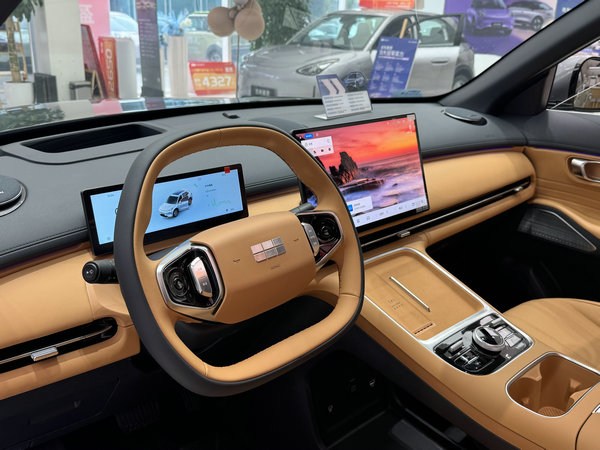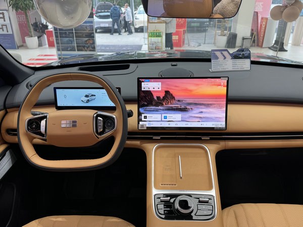 26款銀河星艦 7 EM-i 內飾延續現款風格,新增“星艦灰”配色,10.2 英寸全液晶儀表和15.4 英寸2.5k高清中控屏,搭載 Flyme Auto 車機系統,內置龍鷹一號芯片,操作流暢響應速度更快,支持多屏互動、四音區語音交互、手機互聯無縫流轉。新增自助洗車模式、自定義場景、定制版高德地圖等。還配備了前排座椅加熱/通風以及 14 點腰背臀腿按摩功能、后排座椅加熱、方向盤加熱、16 揚聲器 Flyme Sound 無界之聲音響系統,前后排均為雙層隔音玻璃、50W風冷無線快充等舒適性配置。